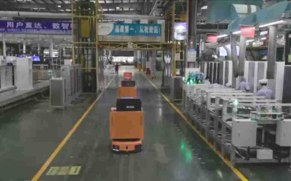 为车载冰箱物流配送打造的智能解决方案,,,包含产中物流通过潜伏举升AMR搬运至线边,,,产后成品物流智能仓储,,,,流程包含产中物流智能齐套入库,,,,线边安灯叫料AMR智能配送至线边,,成品入库、、出库,,通过无人堆高车机器人,,,智能仓储管理替代人工作业管理,,,实现更高存储、、、更高效率、、、更具柔性化的解决方案。。。